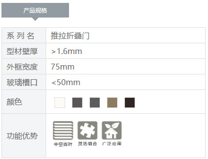 上下协同控制运动的折叠系统,确保任何状况下的扇推拉顺畅;门扇处于关闭状态时的合叶全部隐藏,外观整体性极强;全自动锁闭结构设计,贴心保障,不留一丝隐患。