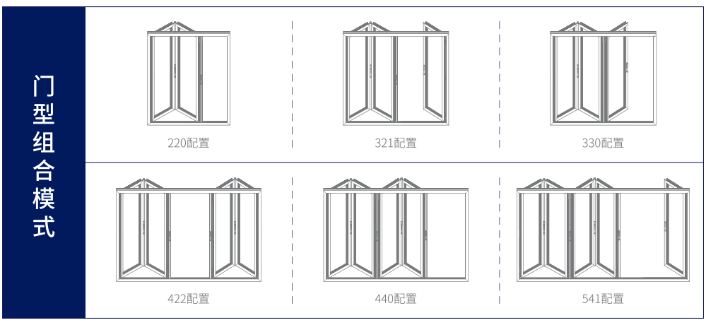 门型组合:220/321/330/440/422/432/541等,满足不同的客户开启需求和适用场景需求。