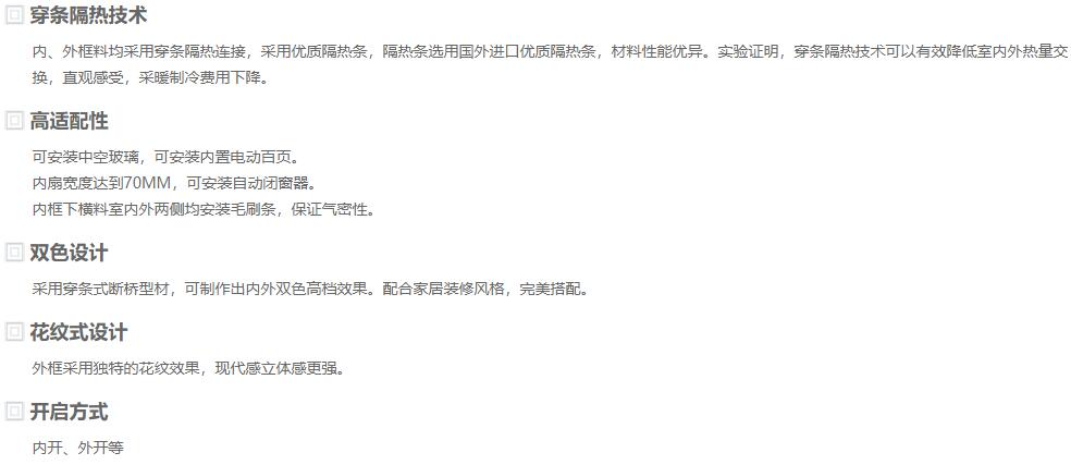 内、外框料均采用穿条隔热连接,采用隔热条,隔热条选用国外进口隔热条,材料性能表现优异。